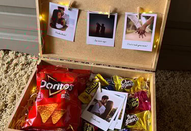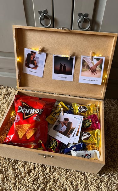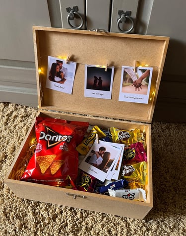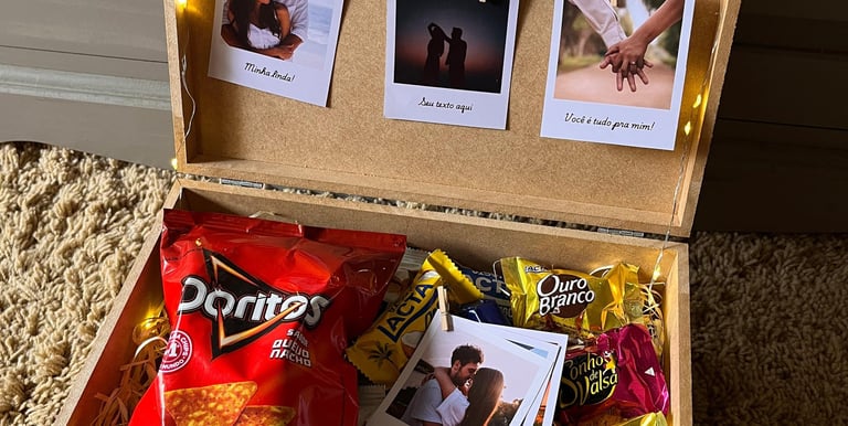 Caixas em MDF personalizadas com fotos estilo Polaroid, perfeitas para surpreender quem você ama em qualquer ocasião.