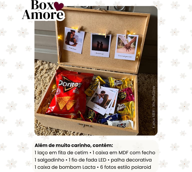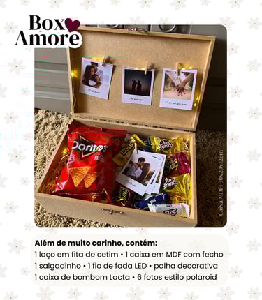 Na Amore Mimo, criamos presentes personalizados que encantam. Desde Box em MDF a quadros e fotos, cada item é feito com amor e dedicação para celebrar momentos especiais.